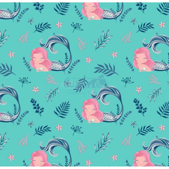 Tecido Tricoline 100% Algodão - Sereia (Tiffany-Marinho) - 180655 - Cor 08 - 0,50m x 1,5m