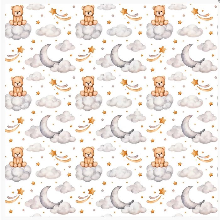 Descrição Tecido Tricoline 100% Algodão - Ursinho na Nuvem - D9050 - V242 - 0,50m x 1,50m