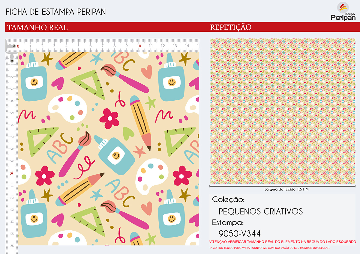 Descrição Tecido Tricoline 100% Algodão - Volta as Aulas - D9050 - V344 - 0,50m x 1,50m