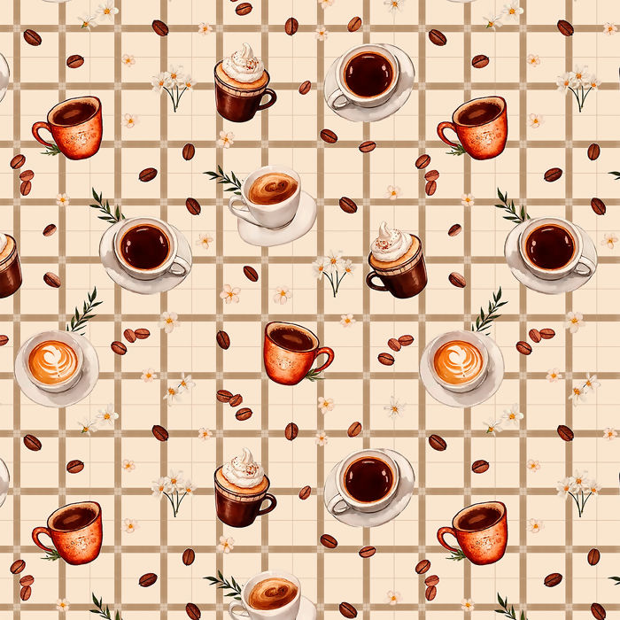 Descrição Tecido Tricoline 100% Algodão - Xícaras de Café - D9050 - V307 - 0,50m x 1,50m
