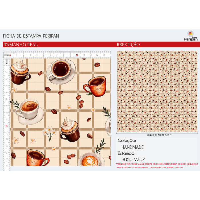 Quanto mede cada Unidade? Tecido Tricoline 100% Algodão - Xícaras de Café - D9050 - V307 - 0,50m x 1,50m
