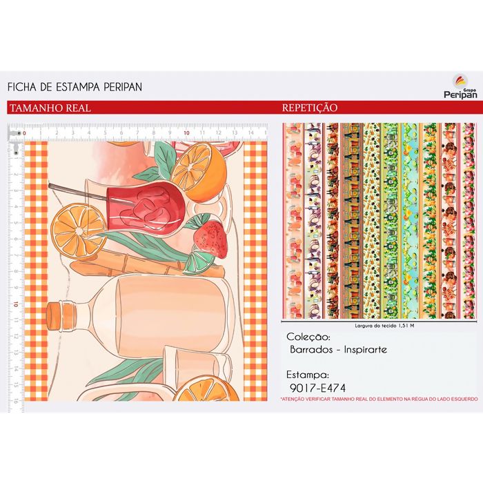 Composição: 100% Algodão Estampa Coleção Peripan Digital Largura: 1,50 metros Gramatura: 121 g / m² 181 g / metro linear