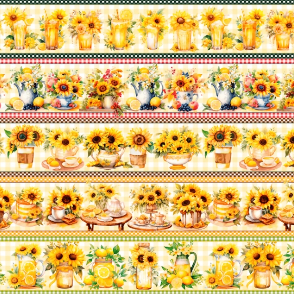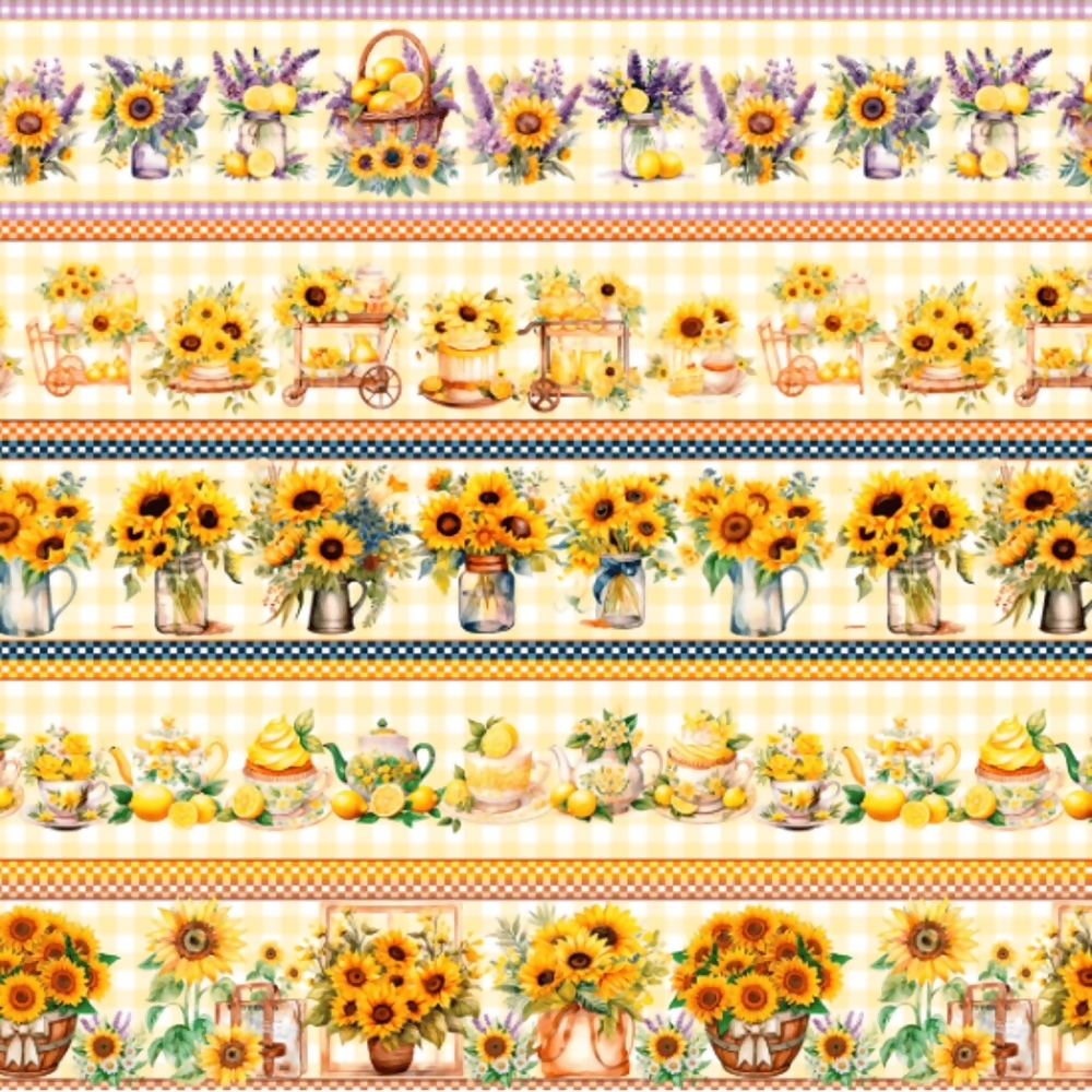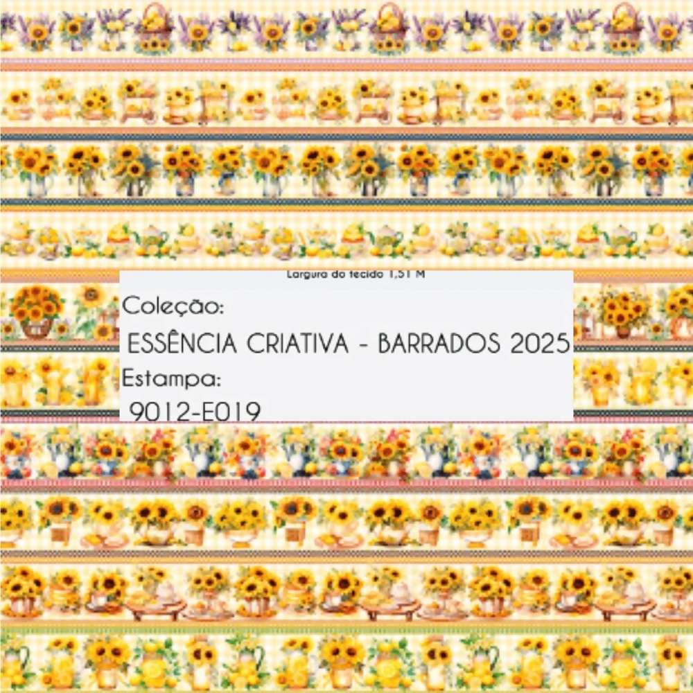 Tecido Tricoline 100% Algodão Digital Barrado Girassol - D9012 - E019 - 0,50m x 1,50m