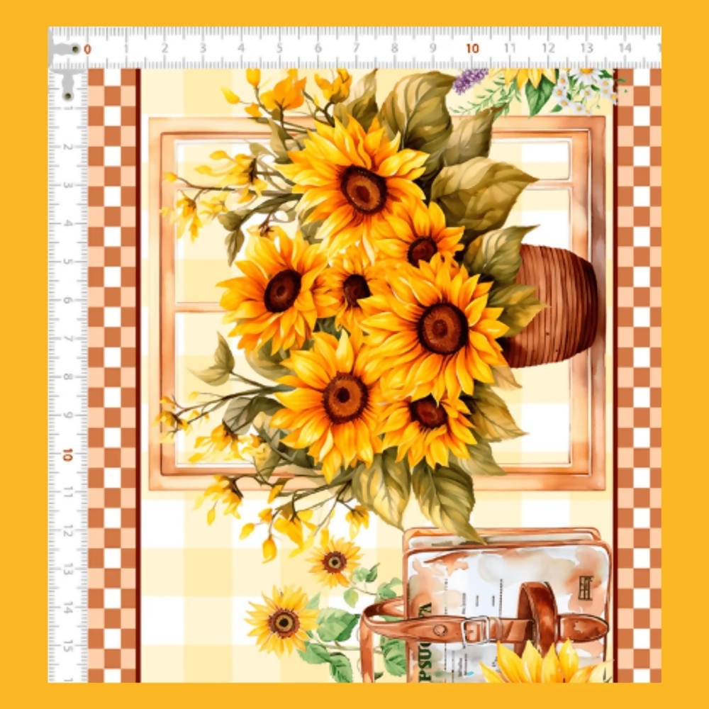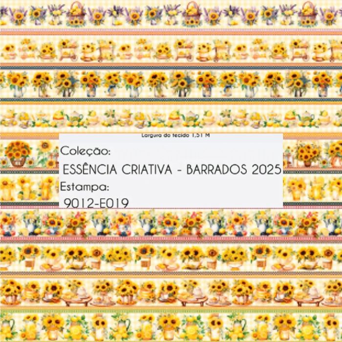 Descrição Tecido Tricoline 100% Algodão Digital Barrado Girassol - D9012 - E019 - 0,50m x 1,50m