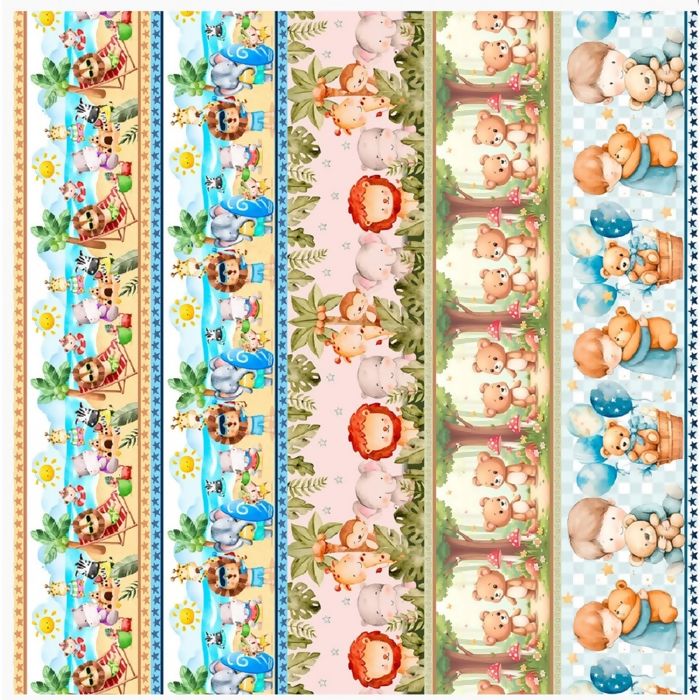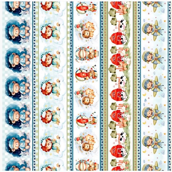 Tecido Tricoline 100% Algodão Digital Barrado Infantil - D9012 - E029 - 0,50m x 1,50m