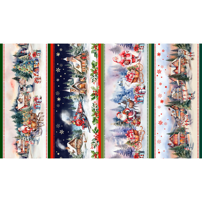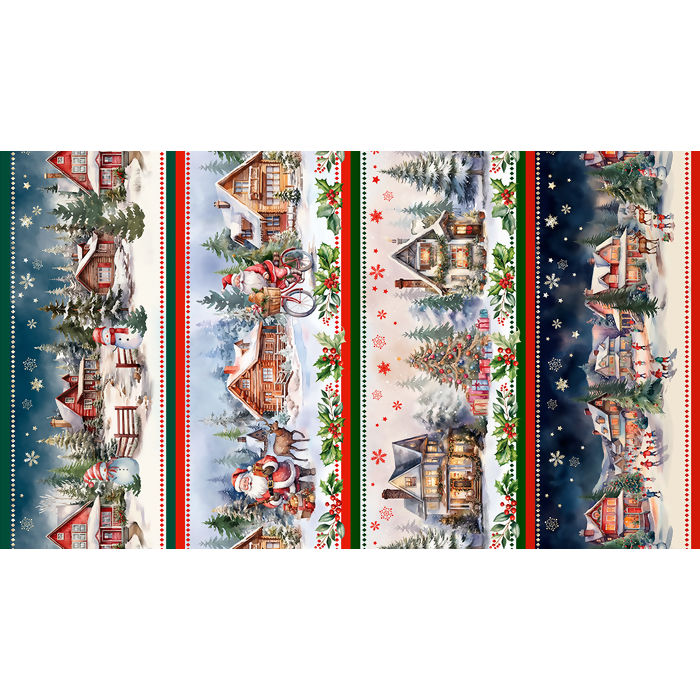 Descrição Tecido Tricoline 100% Algodão Estampa Digital - Barrado Natal Boas Festas - 9001-E178 - 0,50m x 1,5m