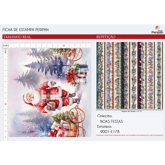 Informações de Conservação Tecido Tricoline 100% Algodão Estampa Digital - Barrado Natal Boas Festas - 9001-E178 - 0,50m x 1,5m