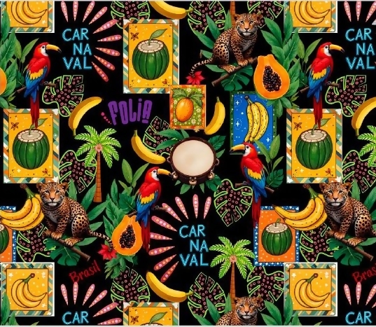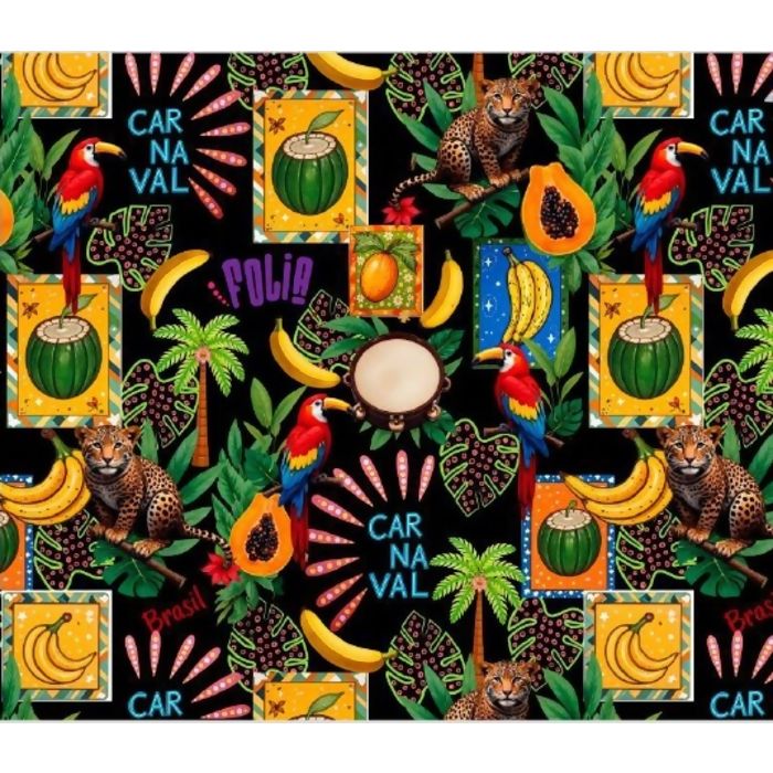 Descrição Tecido Tricoline 100% Algodão Estampa Digital - Carnaval - D9013 - E008 - 0,50m x 1,50m
