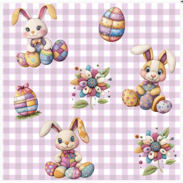Tecido Tricoline 100% Algodão Estampa Digital - Coelho Patch Páscoa - DP152 - 0,50m x 1,50m