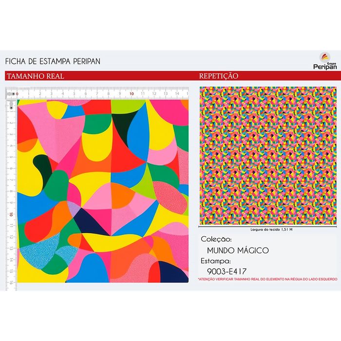 Tecido Tricoline 100% Algodão Estampa Digital - Cores - D9003 - E417 - 0,50m x 1,50m