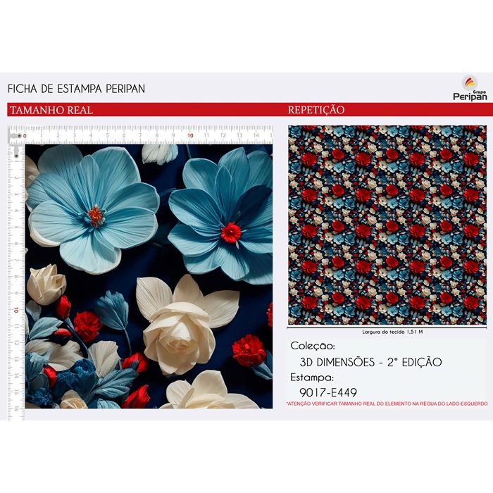 Quanto mede cada Unidade? Tecido Tricoline 100% Algodão Estampa Digital - Flor - D9017 - E449 - 0,50m x 1,50m