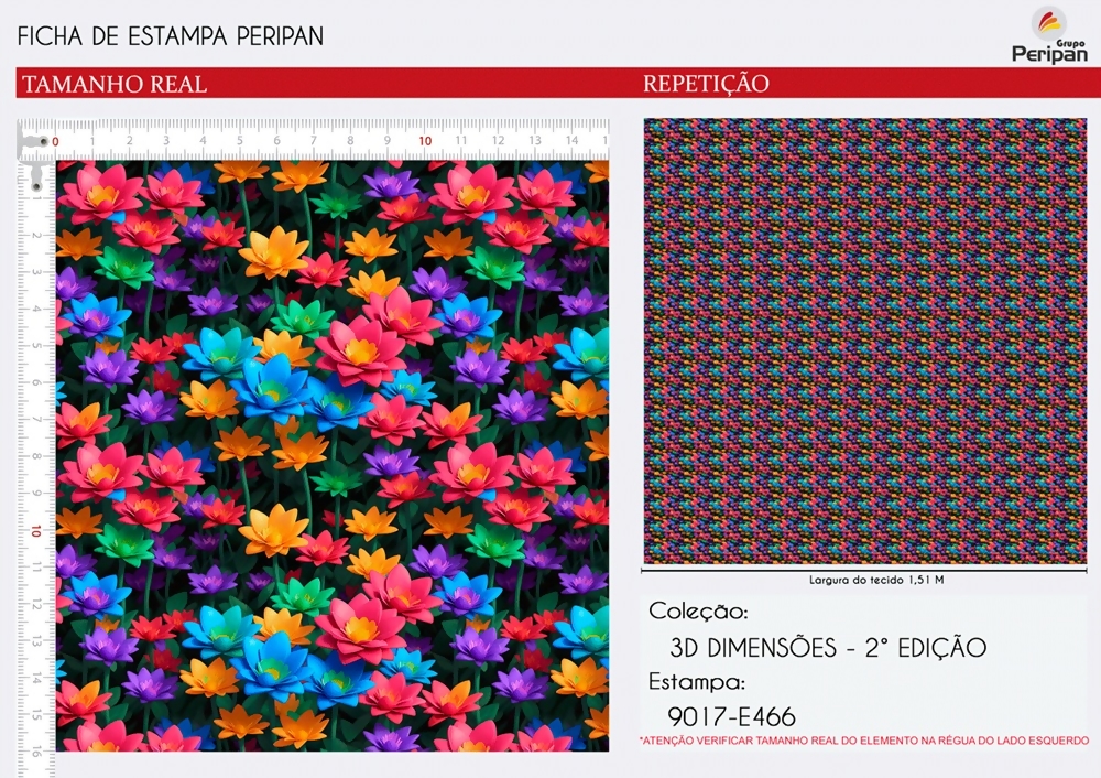 Quanto mede cada Unidade? Tecido Tricoline 100% Algodão Estampa Digital - Floral 3D - D9017 - E466 - 0,50 x 1,50m