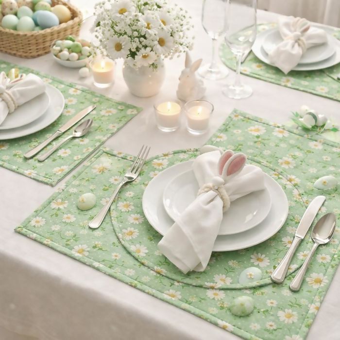 Sua mesa de Páscoa merece esse charme! 🐰 Sousplats em tecido com essa linda estampa temática para receber quem você ama com estilo!