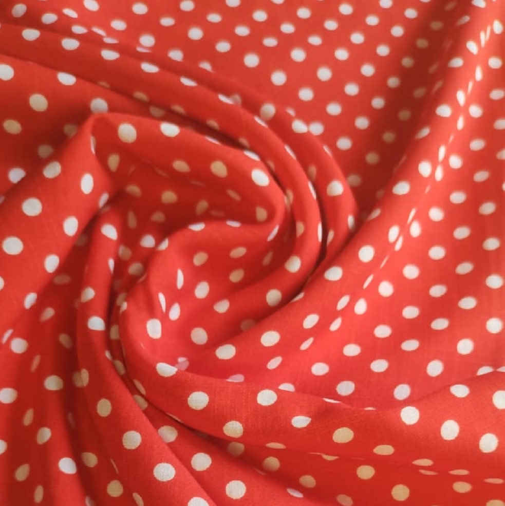 Descrição Tecido Viscolinho Slub 100% Viscose - Poá Vermelho - 0,50m x 1,47m
