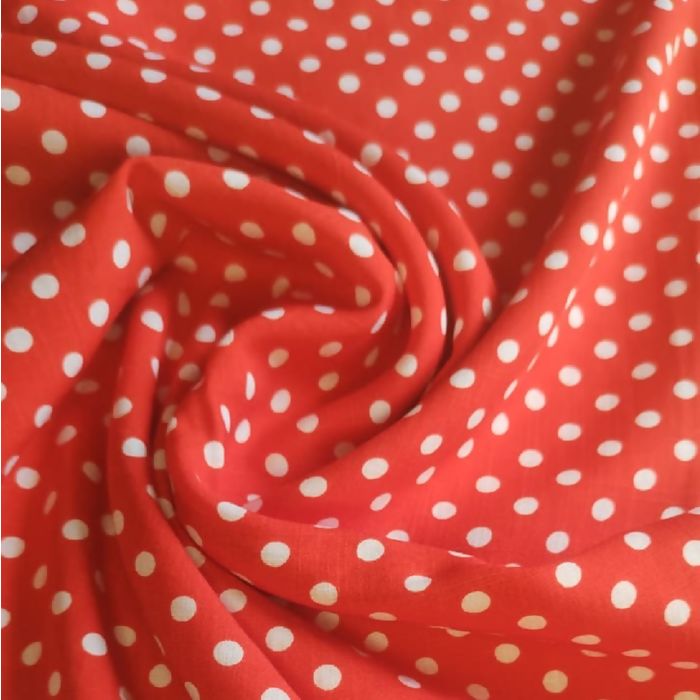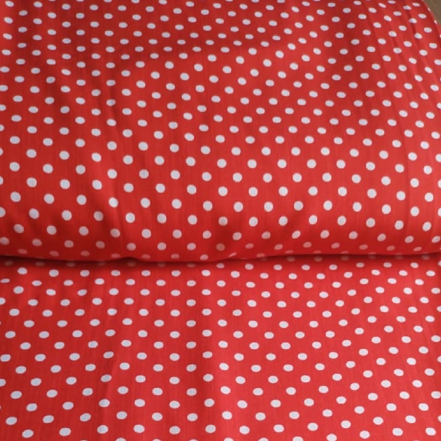 Tecido Viscolinho Slub 100% Viscose - Poá Vermelho - 0,50m x 1,47m