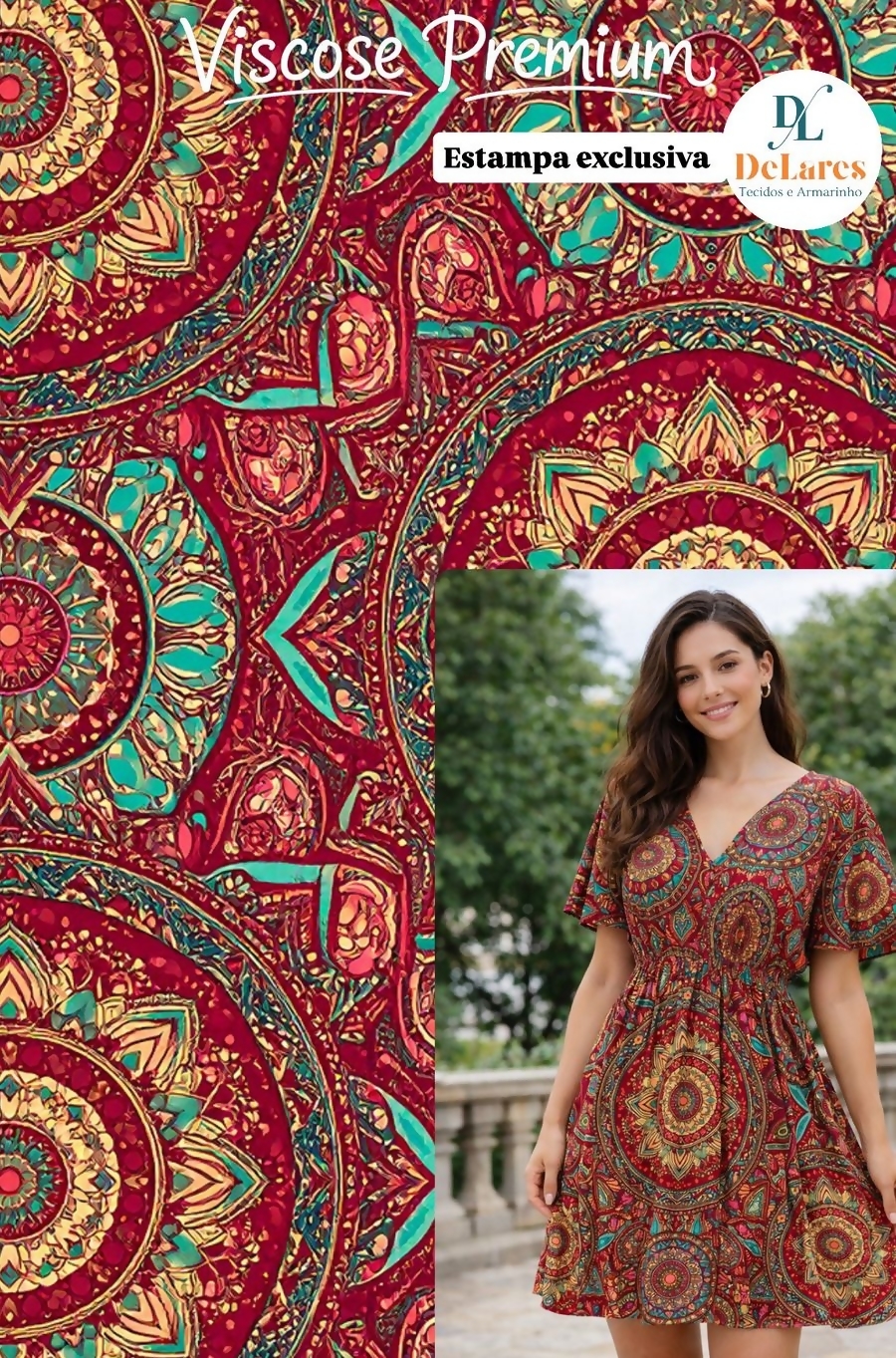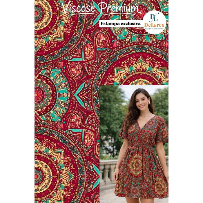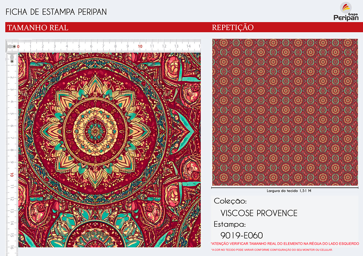Descrição Tecido Viscose Provence 100% Digital - 100% Viscose - D9019-060 - 1,00m x 1,50m