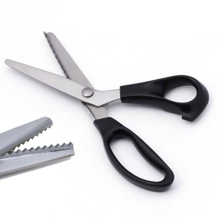 Tesoura com acabamento em "zig zag", com uma lâmina afiada, em aço inoxidável, de fácil aderência e corte preciso. Fabricada Com Lâminas De Aço Inoxidável, Resiste a Corrosão, Ferrugem e Cola.