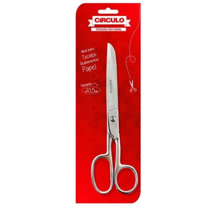 A Tesoura para Uso Geral Círculo é um produto de excelente qualidade, feito de aço inoxidável. Esse acessório é indicado para ser usado em todos os tipos de trabalhos em tecidos, papel e materiais diversos.