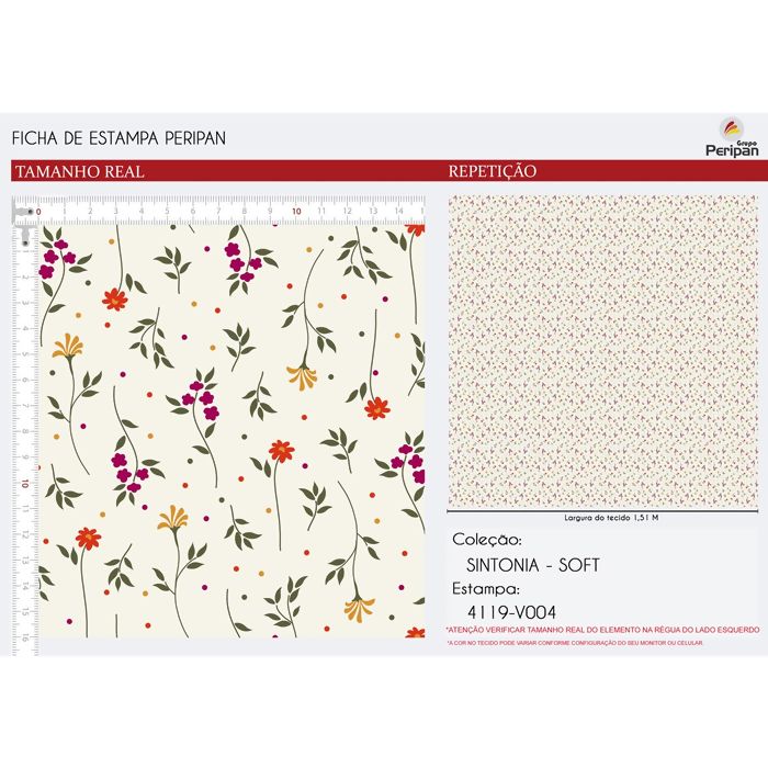 Descrição Tricoline 100% Algodão - Florais - D4119 - V004 - 0,50m x 1,50m